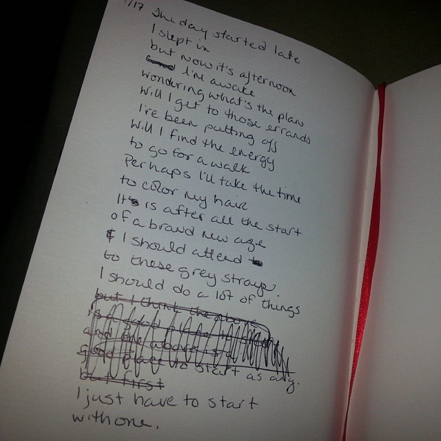the day started late I slept in but now it's afternoon I'm awake wondering what's the plan Will I get to those errands I've been putting off Will I find the energy to go for a walk Perhaps I'll take the time to color my hair it is, after all, the start of a brand new age & I should attend to these grey strays I should do a lot of things I just have to start with one.