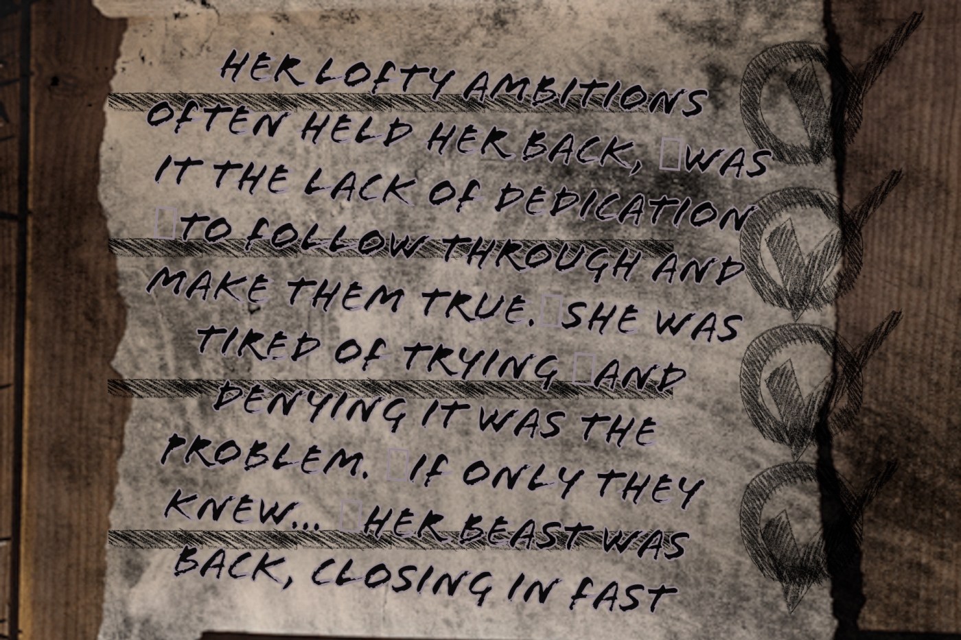 lists lay scattered in tatters