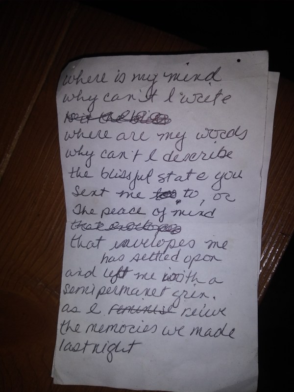 A short lyrical poem (1 verse, 1 chorus) performed in 2019 at the Kibitz open mic.
